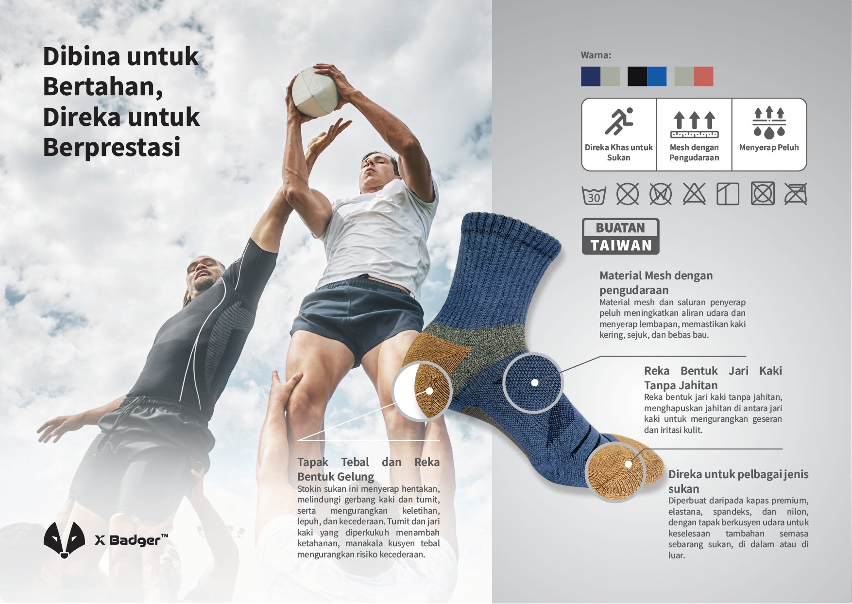 Pastikan kaki anda kering, selesa dan bebas bau! Stoking kami menggunakan campuran kapas, elastane, spandeks dan nilon berkualiti tinggi yang boleh bernafas dan meregang.